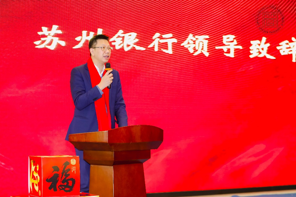 “凝心聚力谋发展,共话新春启新程”年终总结表彰大会暨2026年迎新春茶话会在敬斋酒店举行。学院领导班子、全体教职工与受邀嘉宾欢聚一堂,共同盘点2025年的耕耘收获,展望2026年的崭新篇章。苏州银行园区直属支行分管行长申毅彬、营业部副行长卞忠银等嘉宾应邀出席。