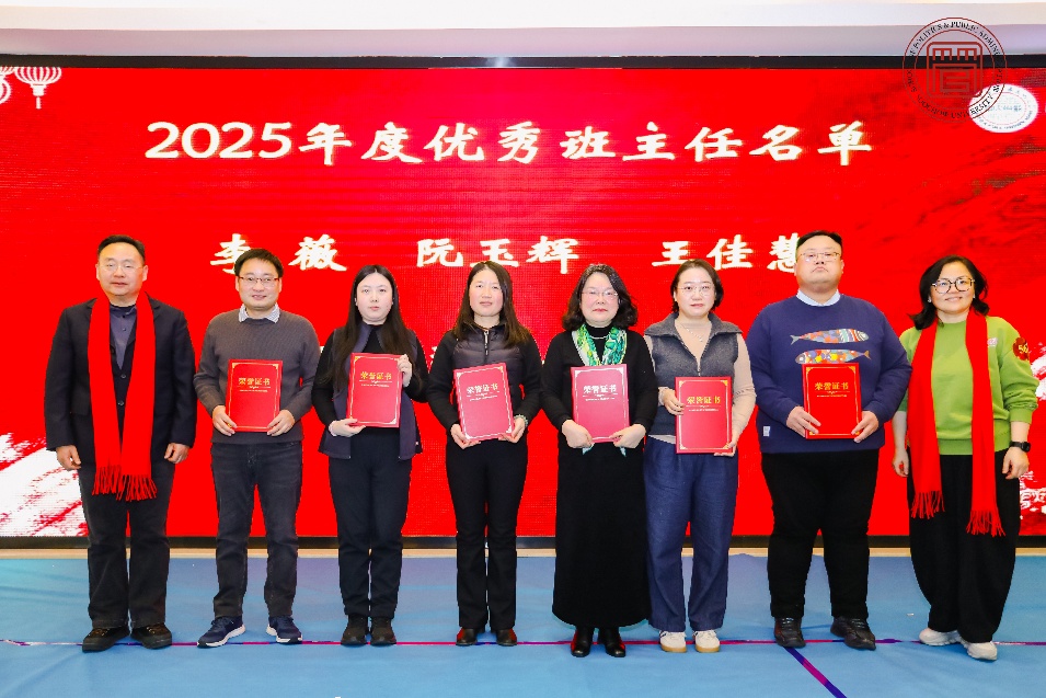 在表彰环节,学院领导为2025年度优秀班主任李薇、阮玉辉、王佳慧、邵健、张晨耕、宋典老师颁发证书,表彰他们潜心育人、关爱学生的奉献精神。学院工会“活力人生,健康加分”运动打卡积分活动获奖教师同时受到表彰。他们以行动诠释了健康生活、积极工作的学院风貌。仪式后,全体参会人员拍摄管院“全家福”,定格温暖瞬间。
