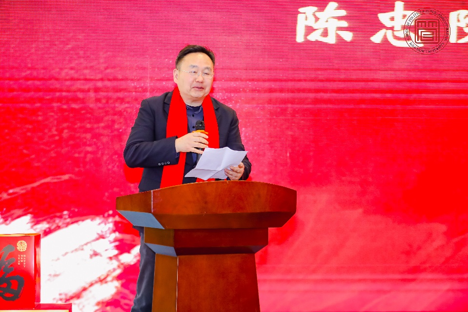 总结表彰大会由院党委书记袁冬梅主持。她向全体与会者致以最诚挚的新春问候,并简要介绍了活动背景和议程,指出本次活动既是总结回顾,更是凝聚共识、共话未来的平台。院长陈忠在致辞中系统回顾了学院2025年在人才培养、学科建设、科学研究、社会服务等方面取得的扎实成绩。陈院长表示,这些成绩离不开全体教职工的辛勤付出与团结协作,2026年学院将继续深化内涵建设,推动各项事业再上新台阶。